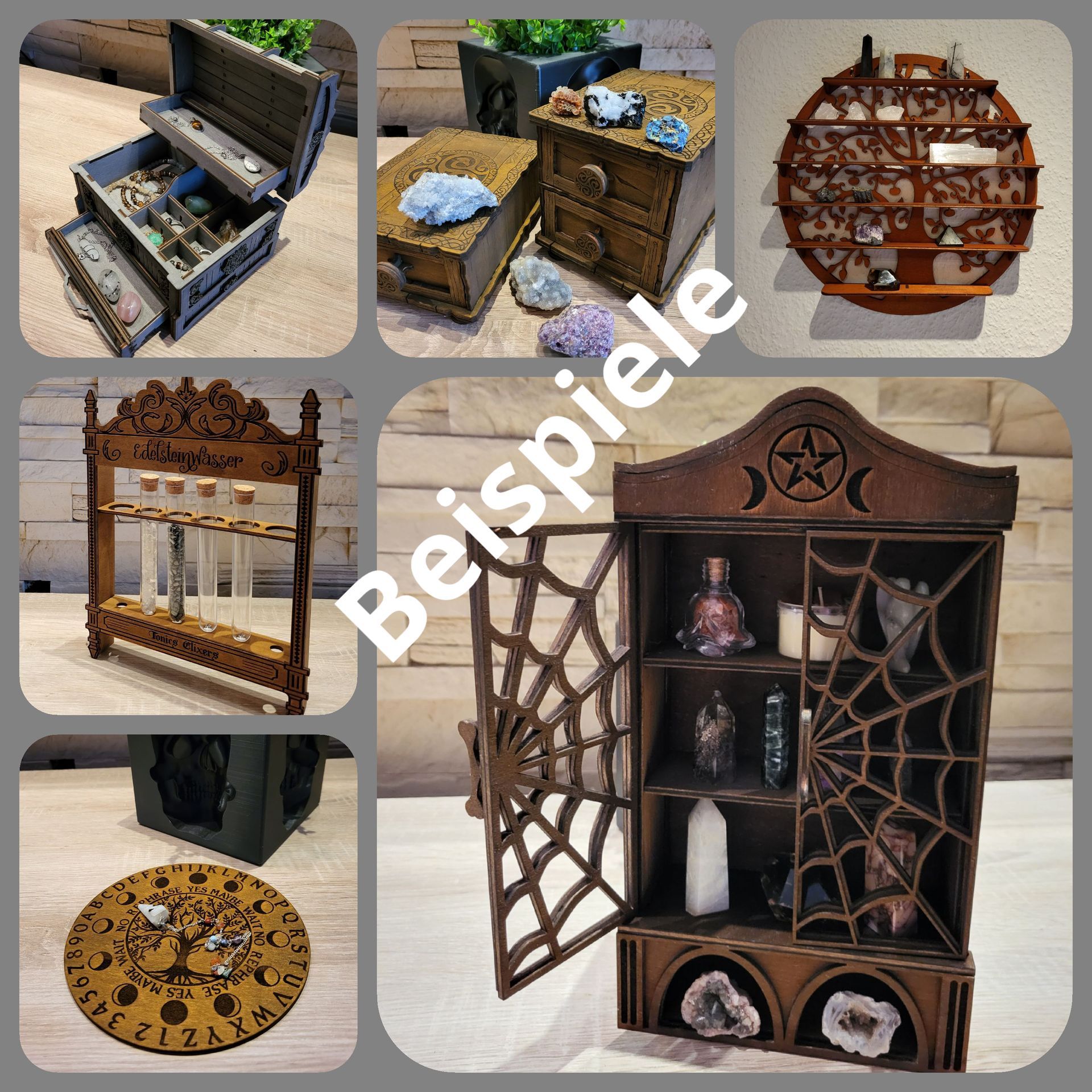 Von einfachen kleinen praktischen Dingen, bis hin zu ausgefallenen Deko- und Geschenkartikel. Marktaufsteller, Schmuckständer/Schmuckkasten, Spirituelles, Aufbewahrung und Präsentation zum Beispiel für Edelsteine, Kerzen oder Seife. Wir arbeiten mit in Deutschland produziertem Holz, Holzleim und Beize, sodass der deutsche Regulierungsstandard erfüllt ist.
